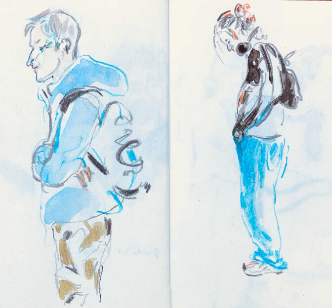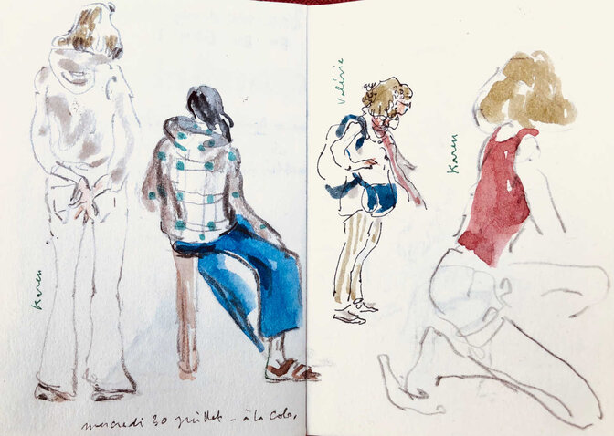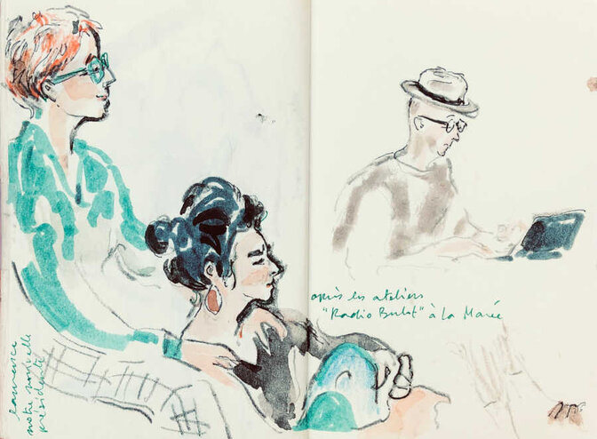 Pascale Evrard nous fournit une nouvelle série de croquis réalisés sur le vif pendant la 19e édition du festival d’été Pirouésie. Grand merci à elle !